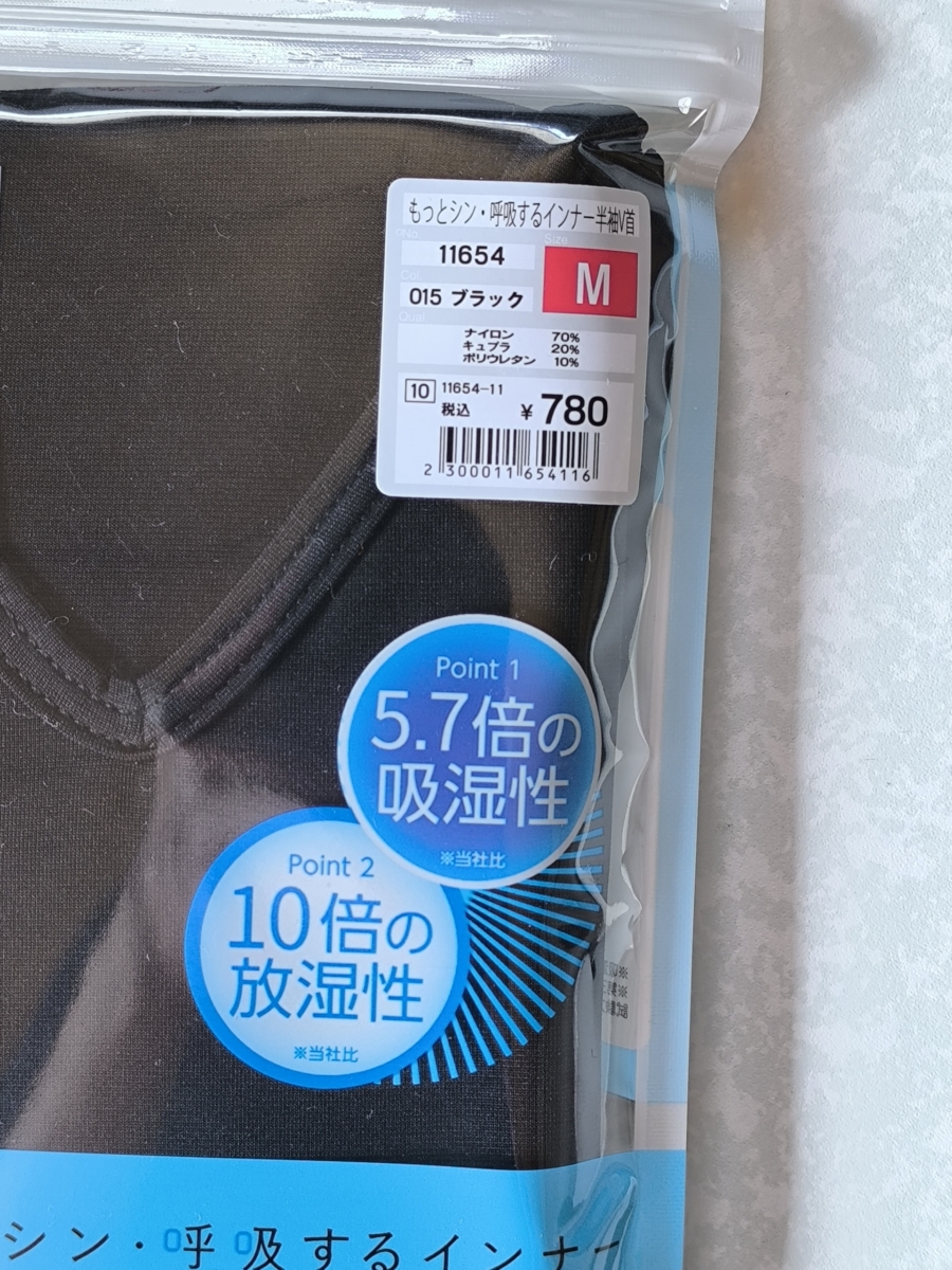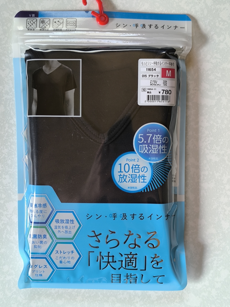 抗菌防臭は従来品のシン・呼吸するインナーにも備わっている機能ですが、接触冷感はこちらにしか備わっていない機能であるため、これらの機能が備わっていて780円というのは、とてもお得ではないでしょうか?